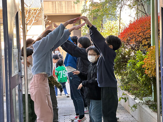 帰り際には、本当は給食でゆっくりしたいところだと思いますが、見送りにと、子供達が集まって来て、トンネルまで作ってくれた。