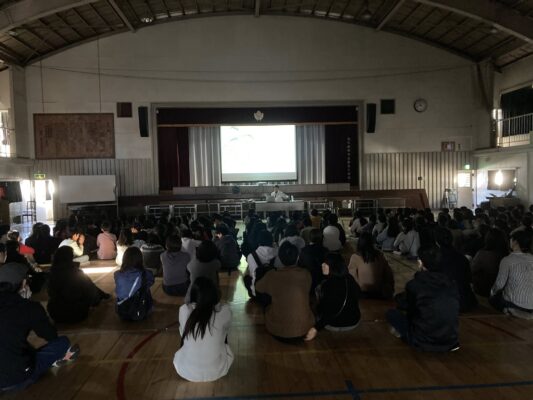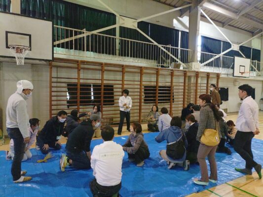 授業1時間前に集合して会場となる体育館にて設営・準備開始。